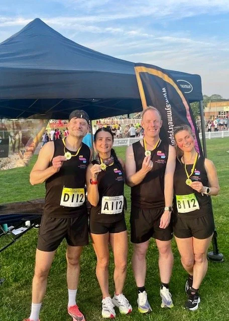 What an evening - over 1000 runners and 300 teams all running at the Staffordshire County Showgrounds, Stafford. Symmetry was on hand to offer pre/post race massages. It was also the debut of Symmetry’s own running team. Made up of fabulous clients. The team comfortably placed in the top 10, in eighth position out of 52 mixed relay teams. A proper win for Symmetry!